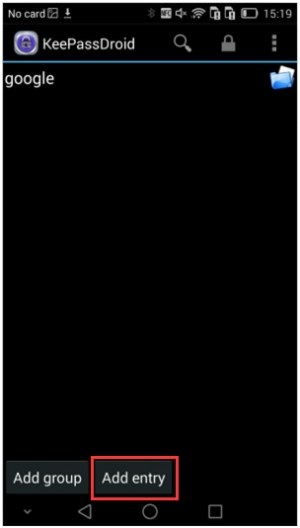Open KeePass database (KeePassDroid will start automatically) and click the KeePass database file (google.kdbx) .